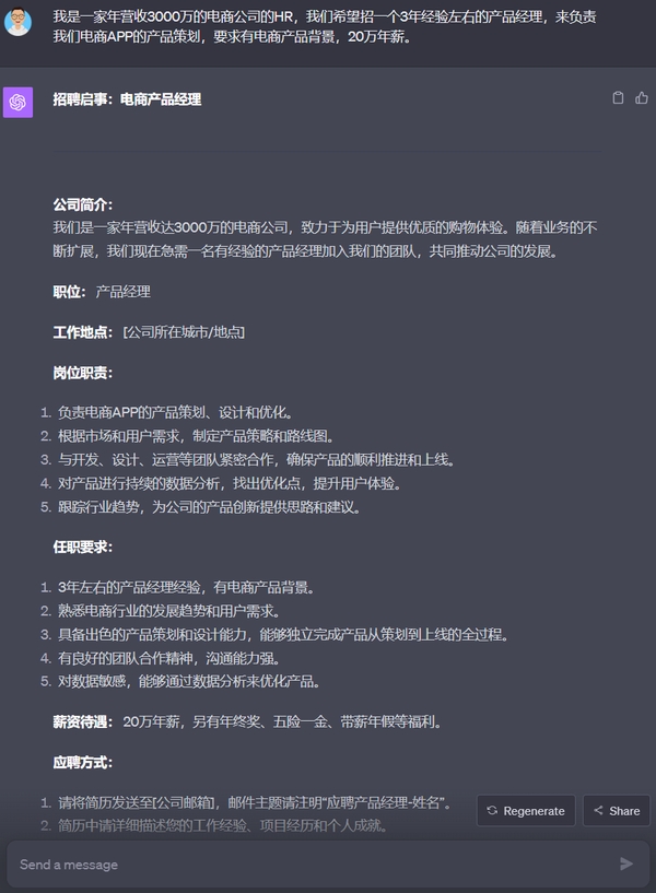 比如,当你想让ChatGPT写一份产品经理招聘JD,那么对应的隐含背景信息是:你作为一个HR要帮公司招到一个符合岗位条件和要求的产品经理。